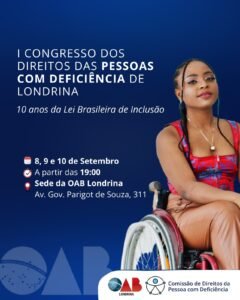 Inscrição via sympla: https://www.sympla.com.br/evento/i-congresso-londrinense-dos-direitos-das-pessoas-com-deficiencia/3065589