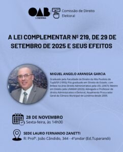 A OAB Londrina informa que estará em recesso no período de 18 de dezembro de 2025 a 06 de janeiro de 2026, com retorno às atividades normais no dia 07/01.